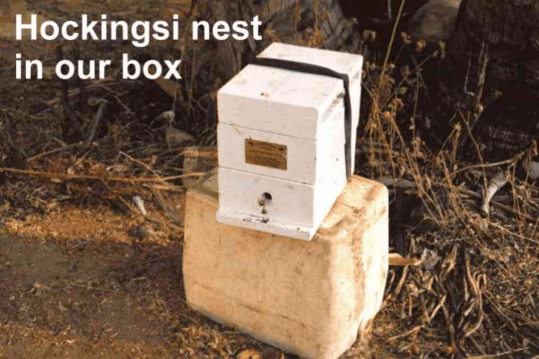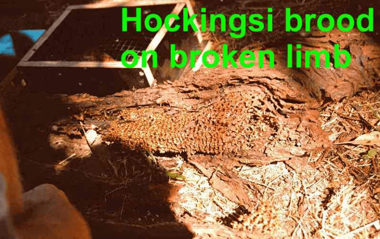 Ron had a T. hockingsi is his yard for months. He knew we were coming. We did the transfer into our OATH box on the second day. Just fitted good. Those hockingsi are savage little creatures. Even the indigenous people were stressed out with the attacks. Tea tree oil and bee nets helped.