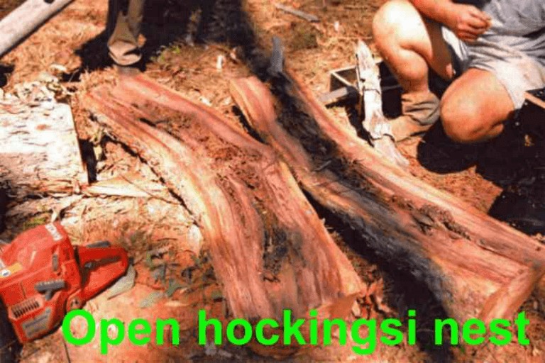 We were to find nests of sugar bag and place the nests into boxes. We showed the people how to do transfers from the logs and to successfully install into our box design. I had faxed two designs up to Ron. The OATH (Original Australian Trigona Hive) design of 7 litres and a larger hockingsi version of the OATH.
