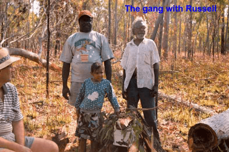 Uncle Joe is a tribal elder. He is a small proud man with much traditional knowledge. He knew all the names. His wife, Rotunda, also came to help. Joshua and his wife were there for us as well. Joshua is the council ranger. Neville is the council liaison officer and coordinates the work done by the indigenous people at the council. Uncle Joe, Joshua and Neville were the people who made it work.